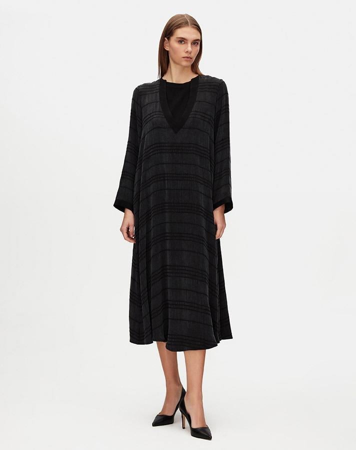 Dalida- V Yaka Jakarlı Cupro Elbise