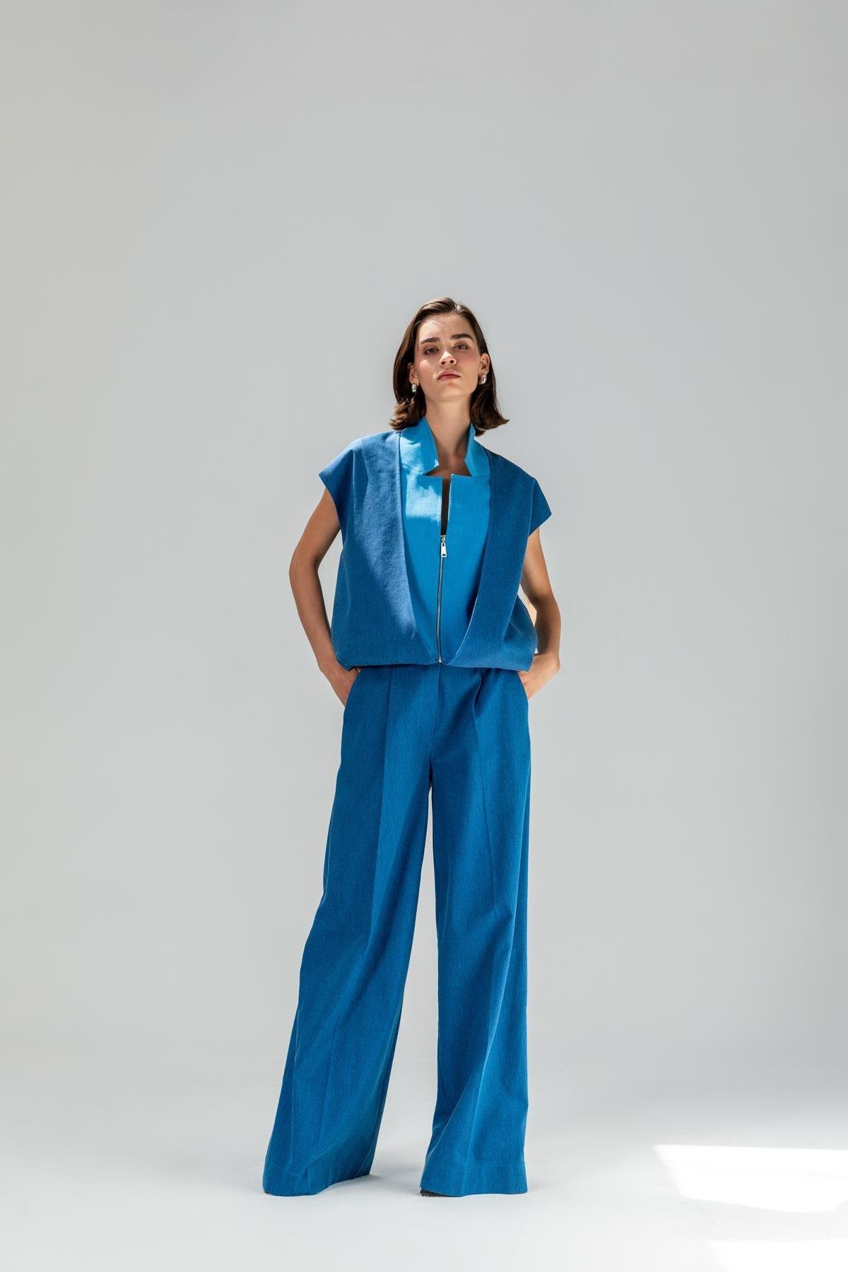Zamansız şıklığın ve konforun mükemmel birleşimi olan Pileli Palazzo Pantolon, geniş paça kesimiyle hareket özgürlüğü sağlarken, pile detaylarıyla sofistike bir görünüm sunuyor. Yüksek bel tasarımı, vücut hatlarınızı zarif bir şekilde vurgularken, hafif ve akıcı kumaşı gün boyu rahatlık sağlıyor. Hem iş hayatında hem de günlük kombinlerde tercih edilebilecek bu model, bluzlar ve gömleklerle kolayca kombinlenerek modern bir stil oluşturmanıza yardımcı olur. Sezon: 25S YAZ Kumaş Türü: DOKUMA Kumaş İçeriği: %75 COTTON %23 POLYESTER %2 ELASTHANE
